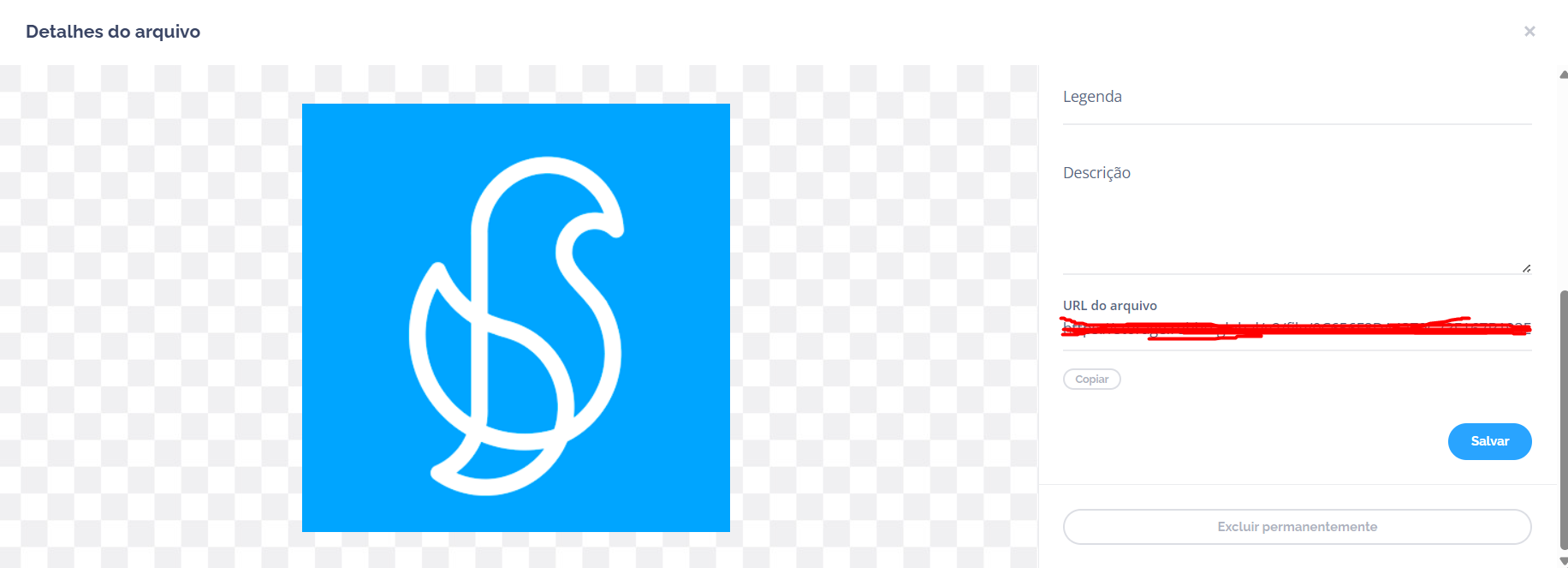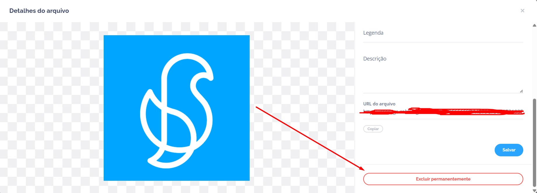 Ao clicar em qualquer arquivo da biblioteca, será aberta uma aba lateral com as seguintes informações e opções:Informações exibidas: