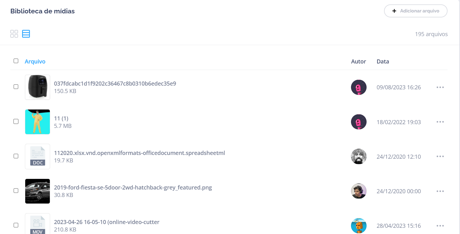 Para adicionar um novo arquivo à biblioteca:- Clique no botão “Adicionar arquivo”.