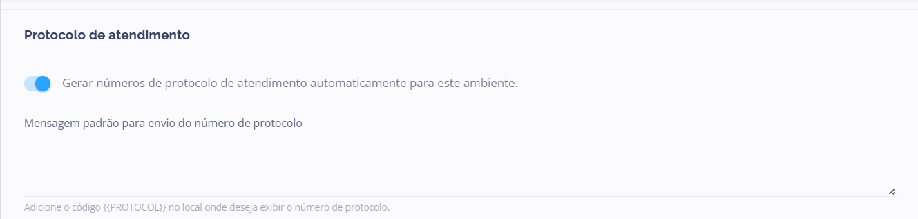 Ative a opção “Protocolo de Atendimento” para permitir que cada atendimento gere automaticamente um número de protocolo exclusivo.4. Personalize a mensagem automática