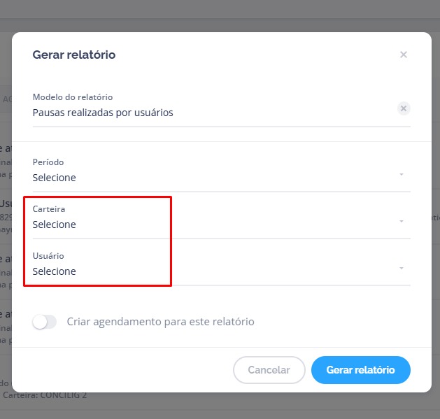 Acesse o relatório “Pausas realizadas por usuários” para acompanhar:- Todas as pausas realizadas.