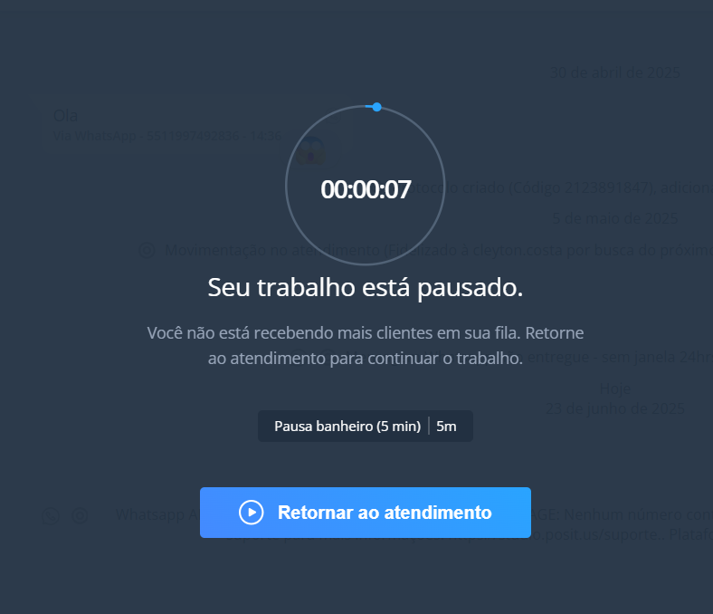 - Selecione Pausar Atendimento.