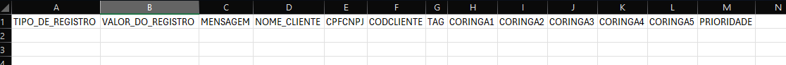 Valor do Registro | [OBRIGATÓRIO] Insira o conteúdo do canal do cliente (número de telefone ou endereço de e-mail). Para telefones, adicionar na mesma célula, sem espaços, no formato DDD+Telefone. |