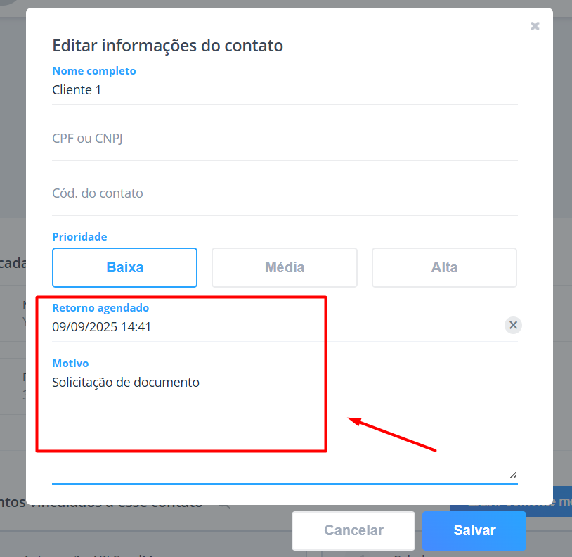Ao agendar um retorno, o contato é automaticamente desvinculado (desfidelizado) do operador responsável no momento.