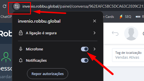 É importante lembrar que, para que esse recurso opere corretamente, o navegador/página web precisa estar com a permissão de microfone ativa.