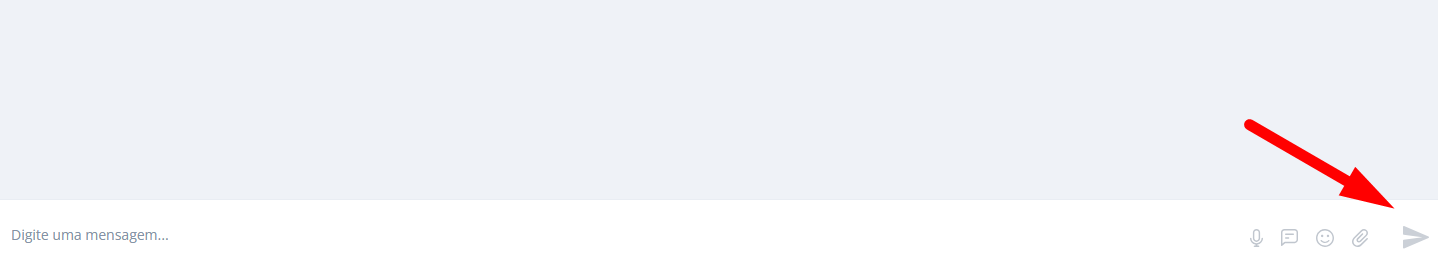 Digite ou transcreva sua mensagem na barra inferior onde está indicado “Digite uma mensagem…” e, em seguida, clique no botão Enviar mensagem (ícone de seta localizado no canto inferior direito, próximo ao botão de anexo).
